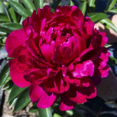 Available Week ThreeMy favorite red. Holds it color through entire extra-long vase life. Velvety, ruby-red double. Startling accent to other peony colors. Especially beautiful with Festiva Maxima pulling out the modest red fleck of Festiva. Double AA bud size. Flower size 6-7 inches. 50cm stem length. Mid season bloomer.