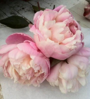 Available Week Three/FourEveryone knows this one. This lady has been around forever and her reputation for lasting about that long too (forever) in a vase is well known. The Madame of peony, Sarah has many shades of pink. Originally a bubble gum pink, but crossed so many times over the years probably with the assistance of bees, we often see Sarahs in ranges from soft, blush pink to a warm dark pink with red flecks. Our newest fields of Sarah tend to be very blush with little or no red flecks. So you can specify the old or the new color of Sarahs when you order and we'll do our best. This is one we can add stem length if you need it for large, tall arrangements. Just let us know early so we can cut to order. Bud size Triple AAA. 60cm stem length. Late season bloomer usually available week three or four.