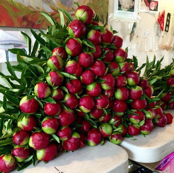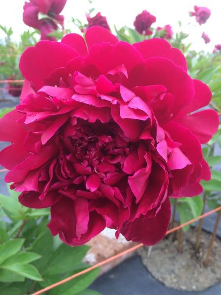 Available Week ThreeThis particular variety holds longer in the cooler and in the vase, by far, than any other peony we've experimented to date. It is classified as a red but it's more of a very hot pink and it holds that color until the petals drop. The intense color make the whites pop and pinks tone down the effect. Moderate sized bloom fits almost any use. Favorite of the guys boutonnieres or for an accent on cream or white cakes. Bud size Double AA. Mid season bloomer usually available week three.