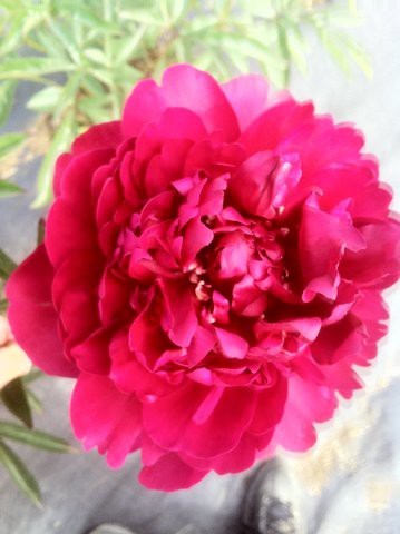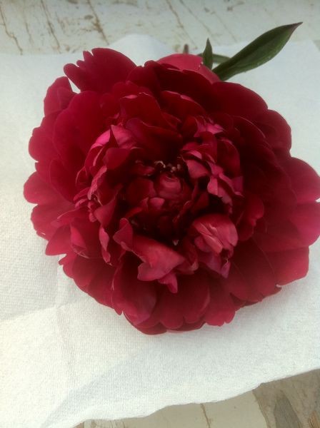 Available Week ThreeMy favorite red. Holds it color through entire extra-long vase life. Velvety, ruby-red double. Startling accent to other peony colors. Especially beautiful with Festiva Maxima pulling out the modest red fleck of Festiva. Double AA bud size. Flower size 6-7 inches. 50cm stem length. Mid season bloomer.